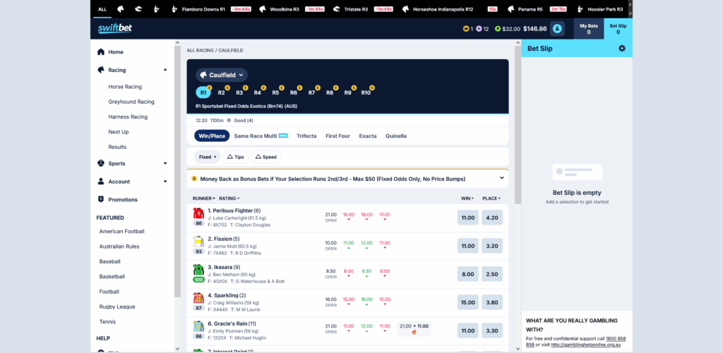 Some bookmakers somewhat restrict themselves in terms of what odds they provide, but Swiftbet are very good when it comes to Australian horse racing, offering top tote odds on all races, which is outstanding. Some cover that on some meetings, but not all, so that is a tick with them.